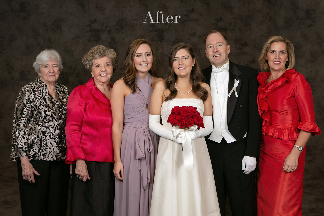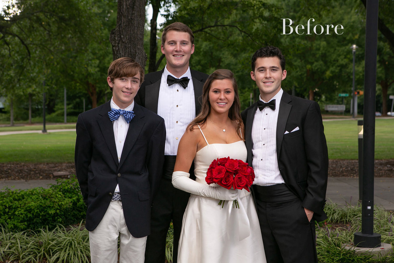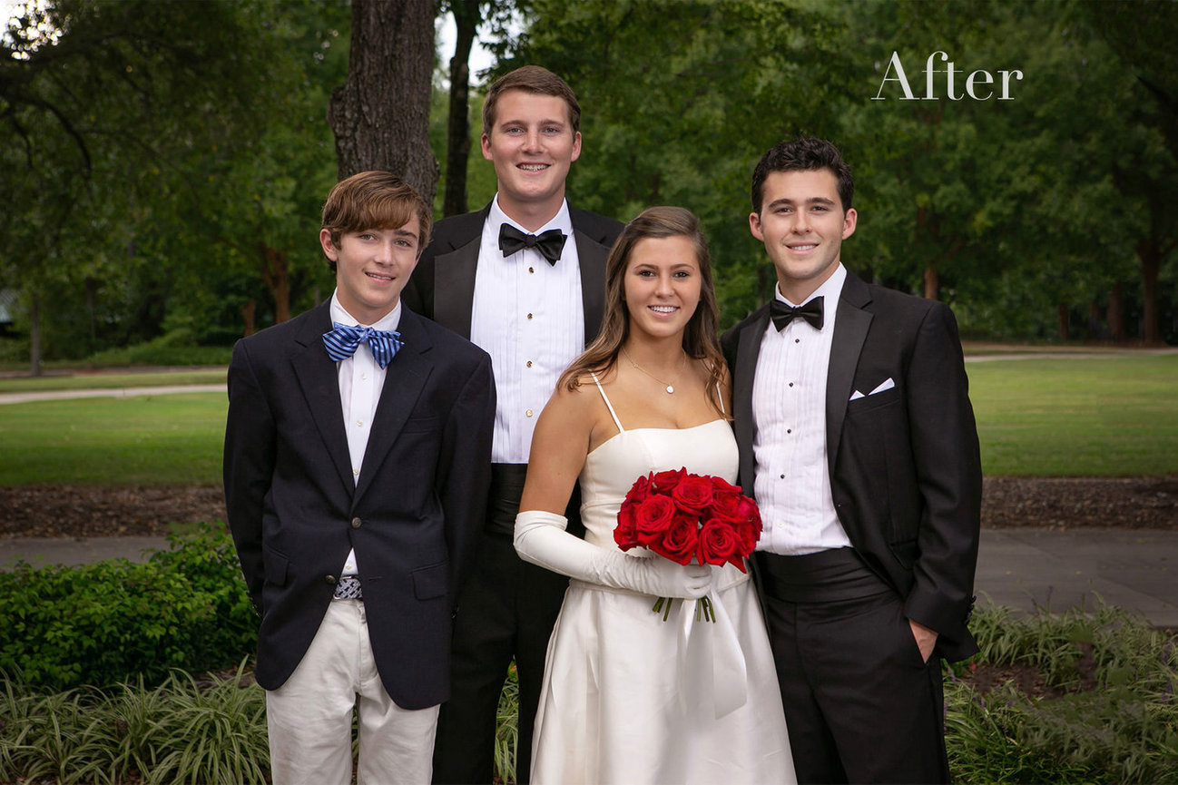 A: Yes! We want your memories to look their best. Each image selected for your album or loose prints goes through a series of touchups and enhancements to address color balance, shine on skin, blemishes, certain background distractions like wrinkles in the formal backgrounds at Marriott, or those awful lamp posts on the background of Meymandi. Those things are included for each image printed. What we can’t do is remove tan lines, make arms or anything else slimmer, “take twenty years off”, remove the heads in the foreground, or chairs from the background of the stage shots, or remove people from the background of party photos
